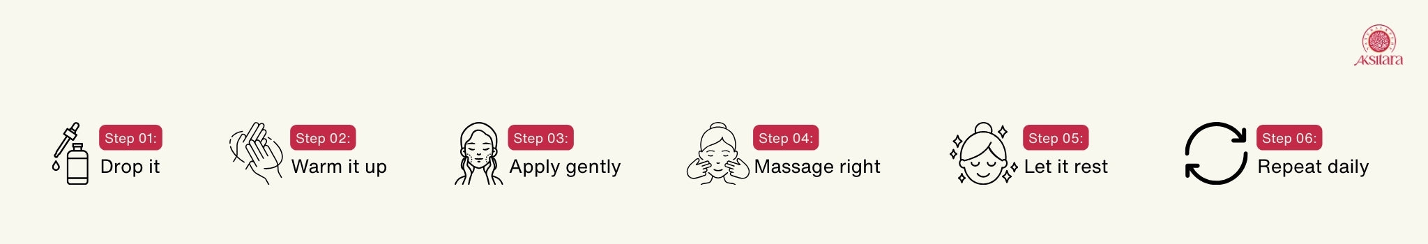 All your skin requires is intense hydration. The routine application of the therapeutic oil helps your skin heal from within. It also favours in soothing, eases the irritation and accelerates the rejuvenation journey of the skin.